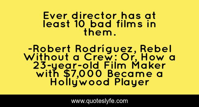 This page presents the quote "Ever director has at least 10 bad films in them.". Author of this quote is Robert Rodríguez, Rebel Without a Crew: Or, How a 23-year-old Film Maker with $7,000 Became a Hollywood Player. This quote is about movies, humor, film,.