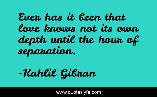 This page presents the quote "Ever has it been that love knows not its own depth until the hour of separation.". Author of this quote is Kahlil Gibran. This quote is about emotion, love, lost-love, heartbreak, parting, affection,.