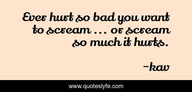 This page presents the quote "Ever hurt so bad you want to scream ... or scream so much it hurts.". Author of this quote is kav. .