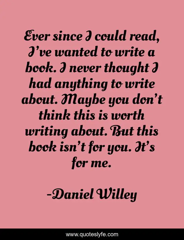 This page presents the quote "Ever since I could read, I’ve wanted to write a book. I never thought I had anything to write about. Maybe you don’t think this is worth writing about. But this book isn’t for you. It’s for me.". Author of this quote is Daniel Willey. This quote is about me, life, goal, author, read, quote, write, book, goals,.