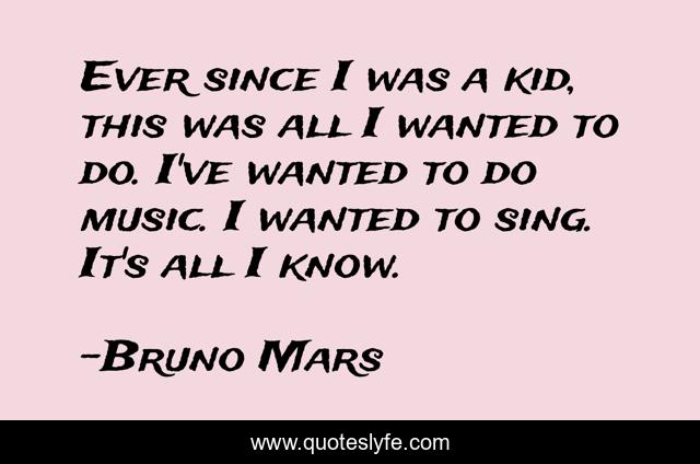 This page presents the quote "Ever since I was a kid, this was all I wanted to do. I've wanted to do music. I wanted to sing. It's all I know.". Author of this quote is Bruno Mars. This quote is about sing, kid,.
