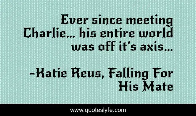 This page presents the quote "Ever since meeting Charlie… his entire world was off it’s axis…". Author of this quote is Katie Reus, Falling For His Mate. This quote is about wolf-shifters, paranormal-romance, shifter-romance,.
