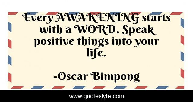 This page presents the quote "Every AWAKENING starts with a WORD. Speak positive things into your life.". Author of this quote is Oscar Bimpong. This quote is about awakening, words-to-inspire-you, speak-positive-things,.