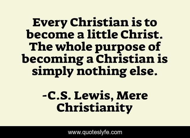 This page presents the quote "Every Christian is to become a little Christ. The whole purpose of becoming a Christian is simply nothing else.". Author of this quote is C.S. Lewis, Mere Christianity. This quote is about christ, christianity,.