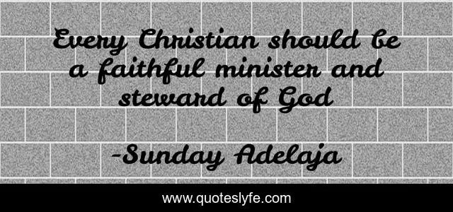 This page presents the quote "Every Christian should be a faithful minister and steward of God". Author of this quote is Sunday Adelaja. This quote is about god, christian, faithful, minister, steward,.