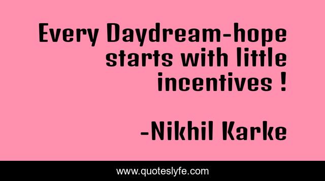 This page presents the quote "Every Daydream-hope starts with little incentives !". Author of this quote is Nikhil Karke. This quote is about life, human, daydream, motivational-inspirational, daydreaming, motivational, incentives, confidence, hope-for-humanity,.