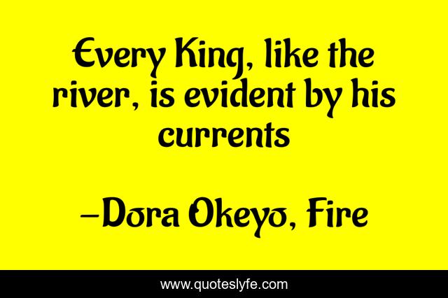 This page presents the quote "Every King, like the river, is evident by his currents". Author of this quote is Dora Okeyo, Fire. This quote is about fire, king, ulioko, uwezo,.