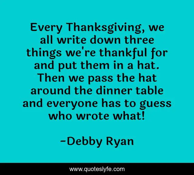 "Debby Ryan Quotes." Quoteslyfe.com, 2025. Fri. 05 Dec. 2025. <https://www.quoteslyfe.com/quote/Every-Thanksgiving-we-all-write-down-three-306086>.