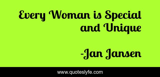 This page presents the quote "Every Woman is Special and Unique". Author of this quote is Jan Jansen. .