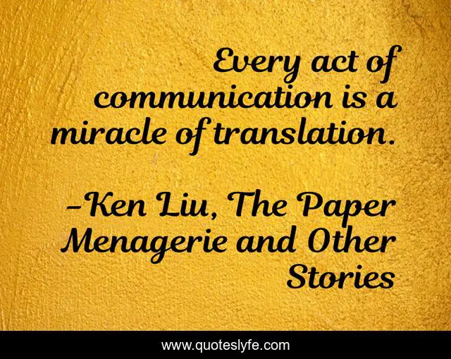 This page presents the quote "Every act of communication is a miracle of translation.". Author of this quote is Ken Liu, The Paper Menagerie and Other Stories. This quote is about communication, translation, miracle,.
