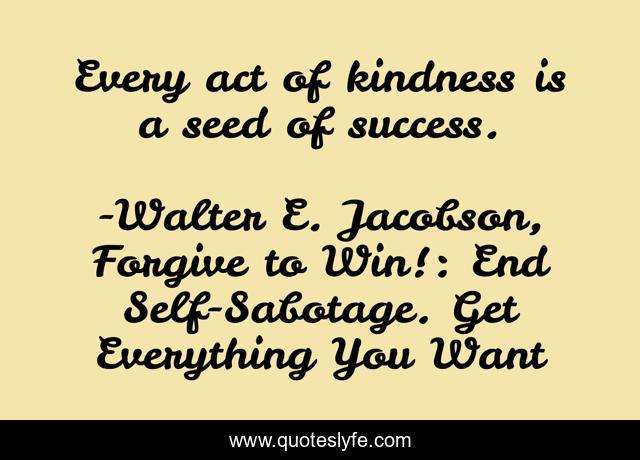 This page presents the quote "Every act of kindness is a seed of success.". Author of this quote is Walter E. Jacobson, Forgive to Win!: End Self-Sabotage. Get Everything You Want. This quote is about success, compassion, service-to-others, self-help, kindness, happiness,.
