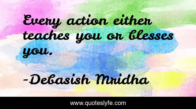 This page presents the quote "Every action either teaches you or blesses you.". Author of this quote is Debasish Mridha. This quote is about debasish-mridha, philosophy, every-action-blesses-you, quotes, blessings, debasish-mridha-md, inspirational, enthusiasm, every-action-teaches-you,.