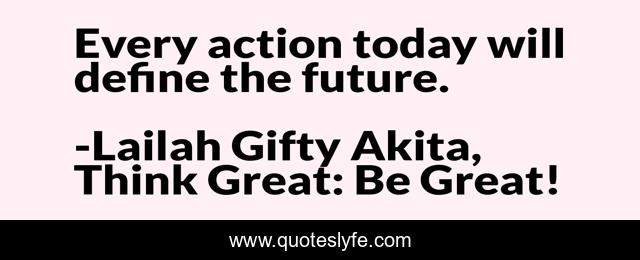 "Lailah Gifty Akita, Think Great: Be Great! Quotes." Quoteslyfe.com, 2025. Fri. 05 Dec. 2025. <https://www.quoteslyfe.com/quote/Every-action-today-will-define-the-future-91778>.