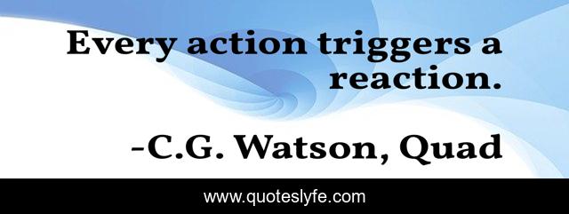 This page presents the quote "Every action triggers a reaction.". Author of this quote is C.G. Watson, Quad. This quote is about life, actions,.