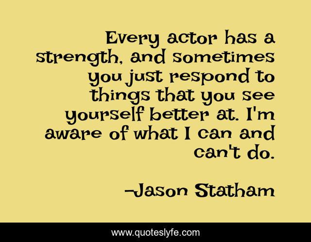 This page presents the quote "Every actor has a strength, and sometimes you just respond to things that you see yourself better at. I'm aware of what I can and can't do.". Author of this quote is Jason Statham. This quote is about better, yourself,.