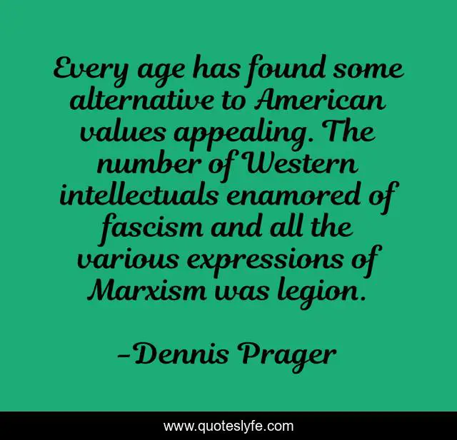 This page presents the quote "Every age has found some alternative to American values appealing. The number of Western intellectuals enamored of fascism and all the various expressions of Marxism was legion.". Author of this quote is Dennis Prager. This quote is about american, values, number,.