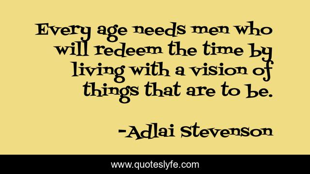 This page presents the quote "Every age needs men who will redeem the time by living with a vision of things that are to be.". Author of this quote is Adlai Stevenson. .