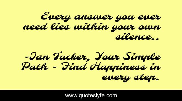 This page presents the quote "Every answer you ever need lies within your own silence..". Author of this quote is Ian Tucker, Your Simple Path - Find Happiness in every step.. This quote is about peace, zen, self-help, reiki, happiness, happy,.
