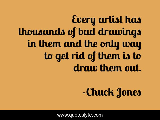 This page presents the quote "Every artist has thousands of bad drawings in them and the only way to get rid of them is to draw them out.". Author of this quote is Chuck Jones. This quote is about art, creativity,.