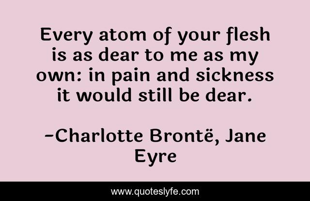 This page presents the quote "Every atom of your flesh is as dear to me as my own: in pain and sickness it would still be dear.". Author of this quote is Charlotte Brontë, Jane Eyre. This quote is about adoration, love, fidelity, affection,.