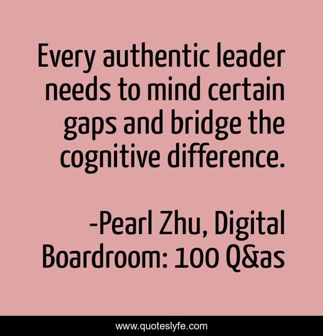 This page presents the quote "Every authentic leader needs to mind certain gaps and bridge the cognitive difference.". Author of this quote is Pearl Zhu, Digital Boardroom: 100 Q&as. This quote is about boardroom, gaps, leadership,.
