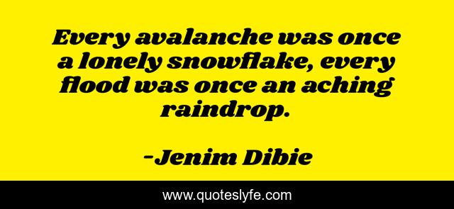 This page presents the quote "Every avalanche was once a lonely snowflake, every flood was once an aching raindrop.". Author of this quote is Jenim Dibie. This quote is about alone, loneliness, lonely, poetry,.