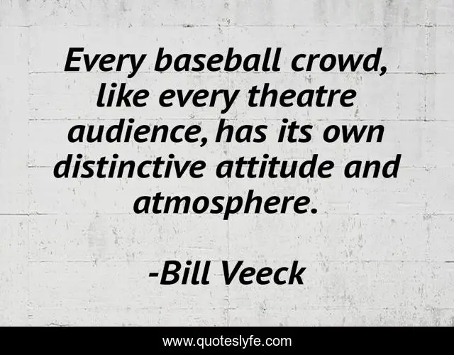 This page presents the quote "Every baseball crowd, like every theatre audience, has its own distinctive attitude and atmosphere.". Author of this quote is Bill Veeck. This quote is about audience, baseball, theatre,.