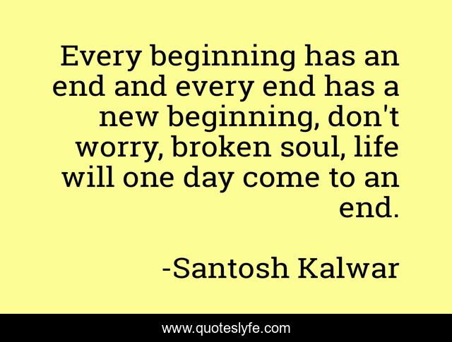 This page presents the quote "Every beginning has an end and every end has a new beginning, don't worry, broken soul, life will one day come to an end.". Author of this quote is Santosh Kalwar. This quote is about love, poetry, affection,.