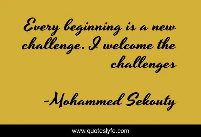 This page presents the quote "Every beginning is a new challenge. I welcome the challenges". Author of this quote is Mohammed Sekouty. .