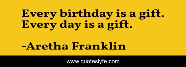 This page presents the quote "Every birthday is a gift. Every day is a gift.". Author of this quote is Aretha Franklin. This quote is about every day, day, gift,.