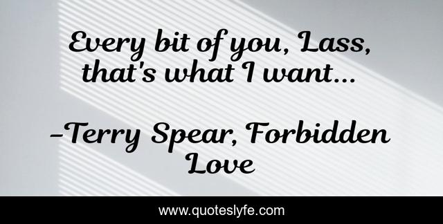 This page presents the quote "Every bit of you, Lass, that's what I want...". Author of this quote is Terry Spear, Forbidden Love. This quote is about romance, huntress, highlands-romance, vampires,.