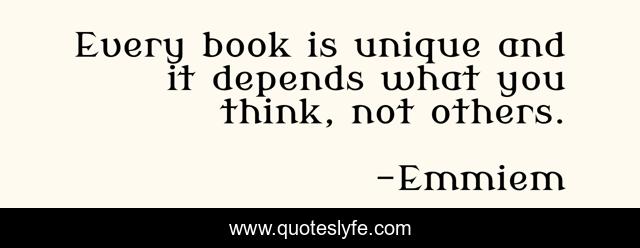 This page presents the quote "Every book is unique and it depends what you think, not others.". Author of this quote is Emmiem. .
