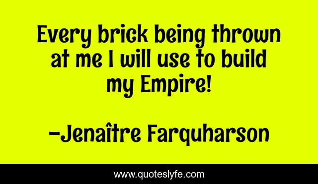 This page presents the quote "Every brick being thrown at me I will use to build my Empire!". Author of this quote is Jenaître Farquharson. This quote is about faith, confidence, motivational, hope-for-each-day, new-beginnings, positivity, self-belief, optimistic, inspirational,.