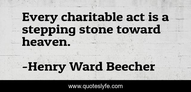 This page presents the quote "Every charitable act is a stepping stone toward heaven.". Author of this quote is Henry Ward Beecher. .