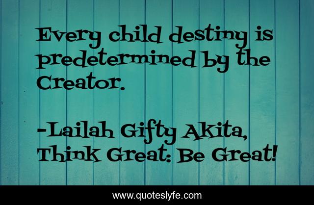 "Lailah Gifty Akita, Think Great: Be Great! Quotes." Quoteslyfe.com, 2025. Sat. 06 Dec. 2025. <https://www.quoteslyfe.com/quote/Every-child-destiny-is-predetermined-by-the-85385>.