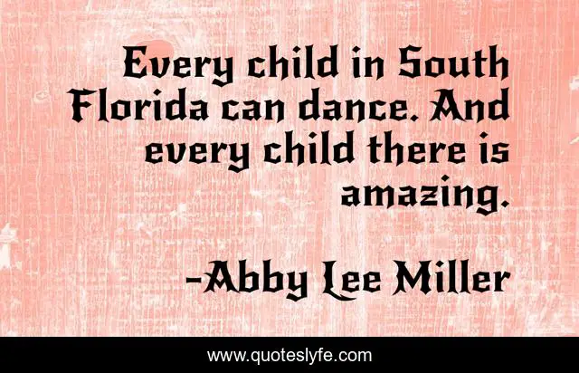 This page presents the quote "Every child in South Florida can dance. And every child there is amazing.". Author of this quote is Abby Lee Miller. This quote is about dance, south-florida,.