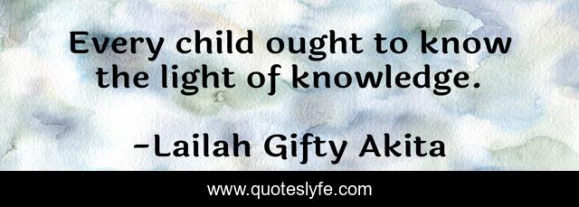 This page presents the quote "Every child ought to know the light of knowledge.". Author of this quote is Lailah Gifty Akita. This quote is about wise-words, education, children, knowledge,.