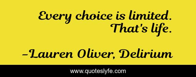 "Lauren Oliver, Delirium Quotes." Quoteslyfe.com, 2025. Mon. 08 Dec. 2025. <https://www.quoteslyfe.com/quote/Every-choice-is-limited-That-s-life-184831>.