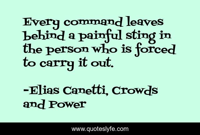 This page presents the quote "Every command leaves behind a painful sting in the person who is forced to carry it out.". Author of this quote is Elias Canetti, Crowds and Power. This quote is about power, human-nature, sting, command, human, crowds,.