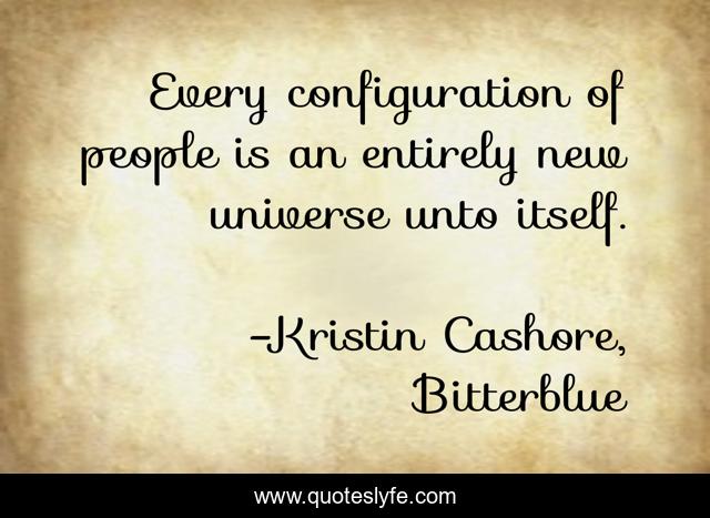 This page presents the quote "Every configuration of people is an entirely new universe unto itself.". Author of this quote is Kristin Cashore, Bitterblue. .