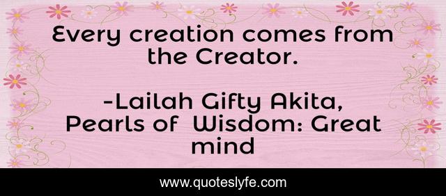 "Lailah Gifty Akita, Pearls of Wisdom: Great mind Quotes." Quoteslyfe.com, 2025. Fri. 05 Dec. 2025. <https://www.quoteslyfe.com/quote/Every-creation-comes-from-the-Creator-85050>.