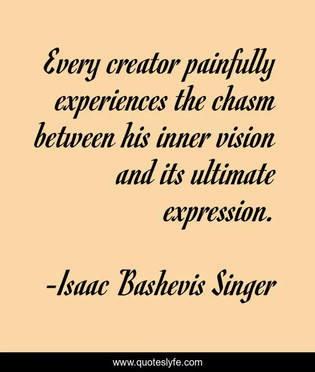 This page presents the quote "Every creator painfully experiences the chasm between his inner vision and its ultimate expression.". Author of this quote is Isaac Bashevis Singer. This quote is about experiences, vision,.