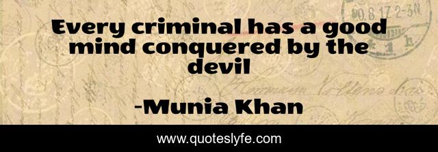 This page presents the quote "Every criminal has a good mind conquered by the devil". Author of this quote is Munia Khan. This quote is about criminals, devils, mind, minds, devil, conquer, conquered, criminal, criminal-justice,.
