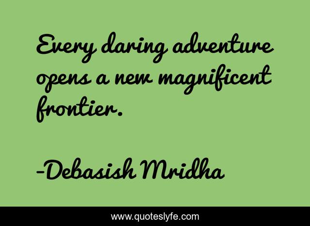 This page presents the quote "Every daring adventure opens a new magnificent frontier.". Author of this quote is Debasish Mridha. This quote is about daring-adventure, new-frontier, philosophy, debasish-mridha, quotes, adventure, inspirational, enthusiasm, debasish-mridha-md,.
