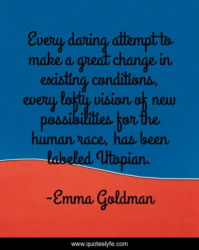 This page presents the quote "Every daring attempt to make a great change in existing conditions, every lofty vision of new possibilities for the human race, has been labeled Utopian.". Author of this quote is Emma Goldman. This quote is about great, vision, human,.