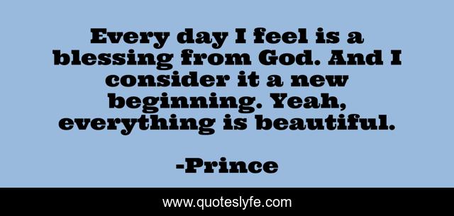 This page presents the quote "Every day I feel is a blessing from God. And I consider it a new beginning. Yeah, everything is beautiful.". Author of this quote is Prince. This quote is about beautiful, god, day,.