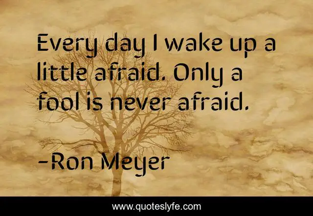 This page presents the quote "Every day I wake up a little afraid. Only a fool is never afraid.". Author of this quote is Ron Meyer. .