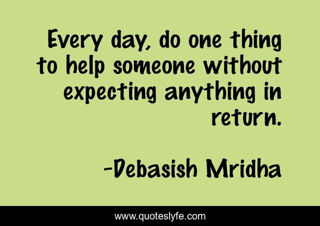 This page presents the quote "Every day, do one thing to help someone without expecting anything in return.". Author of this quote is Debasish Mridha. This quote is about do-something-for-others, random-acts-of-kindness, philosophy, debasish-mridha, help-others, quotes, debasish-mridha-md, inspirational, enthusiasm,.