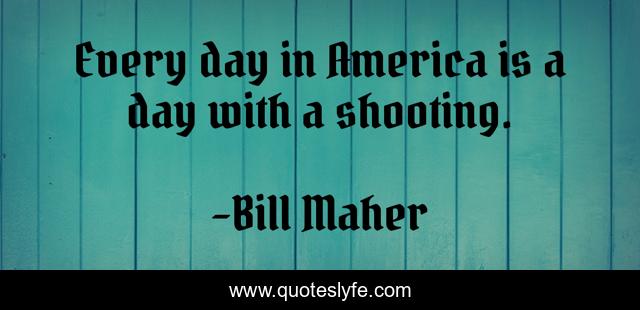 This page presents the quote "Every day in America is a day with a shooting.". Author of this quote is Bill Maher. This quote is about violence, gun-violence, gun-control, real-time-with-bill-maher, politics, america, guns,.