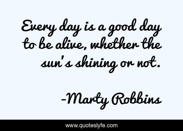 This page presents the quote "Every day is a good day to be alive, whether the sun's shining or not.". Author of this quote is Marty Robbins. This quote is about good day, day, sun,.